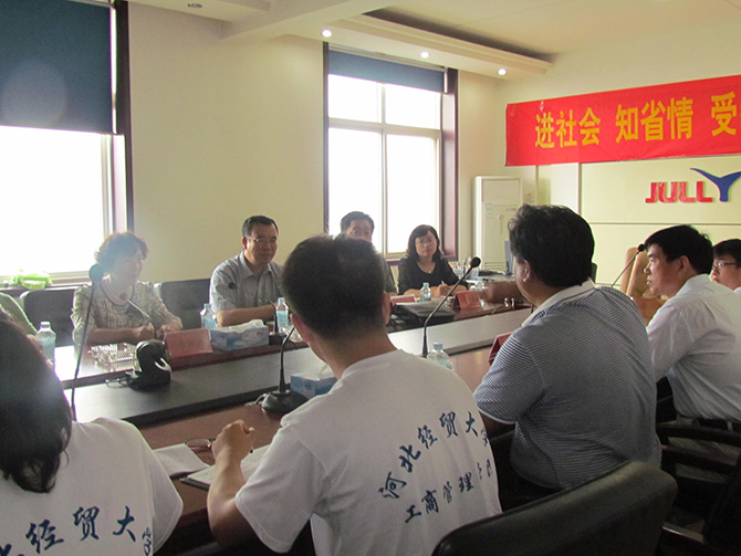 7月11日,为促进大学生和青年教师“进社会、知省情、受教育、长才干、做贡献”,河北经贸大学工商管理学院师生来我公司开展暑期“体验省情、服务群众”主题实践活动。